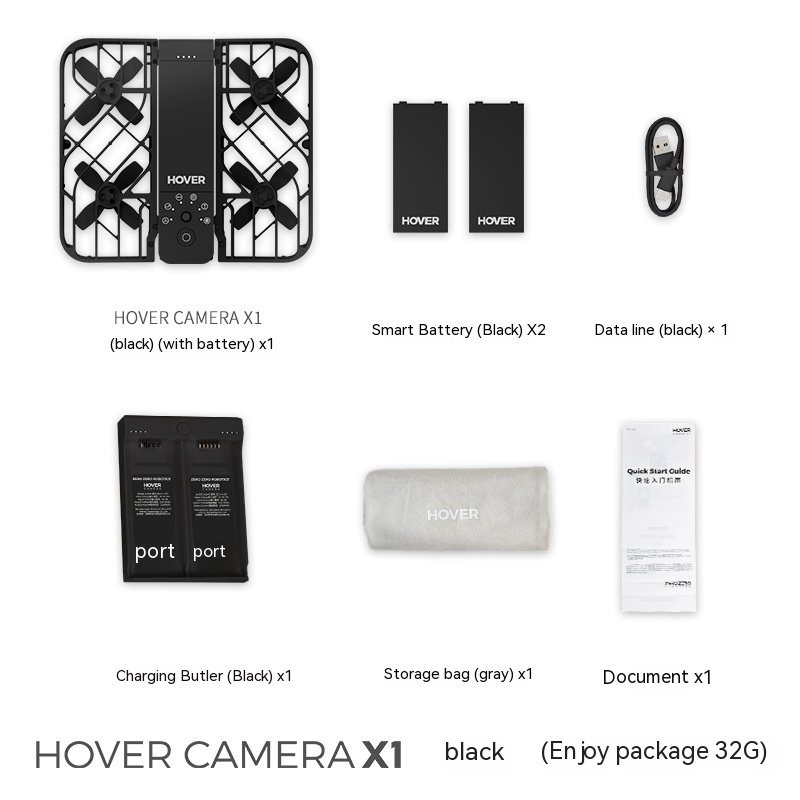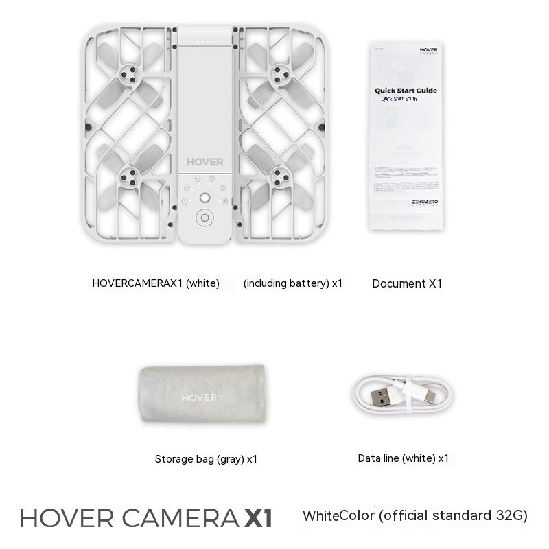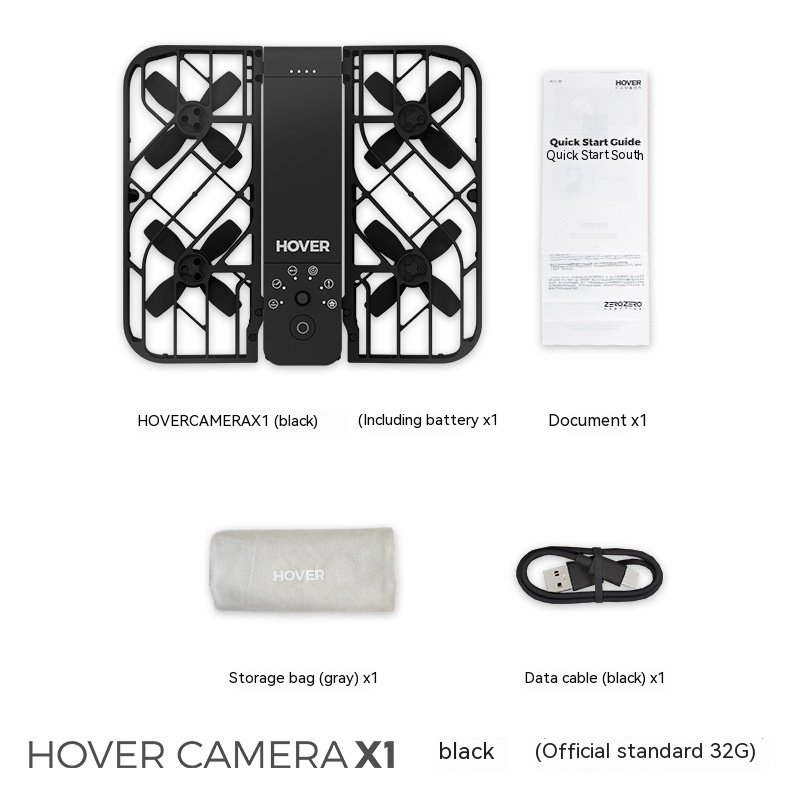HOVER CAMERA x1 (including battery) x1,Document x1,Storage bag x1,Data cable x1